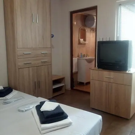 Die "Meggi" Овчаровски Плаж - Басейн, Барбекю verfügt über ein Fernsehen mit mehreren Kanälen und bietet einen Ausblick aufs Meer. Die Villa ist nicht nur mit Fliesenbodenbelag, sondern auch mit schallisolierten Fenstern ausgestattet. Zur Ausstattung des Badezimmers gehören eine getrennte Toilette und eine Dusche sowie eine Duschhaube und Handtücher.
